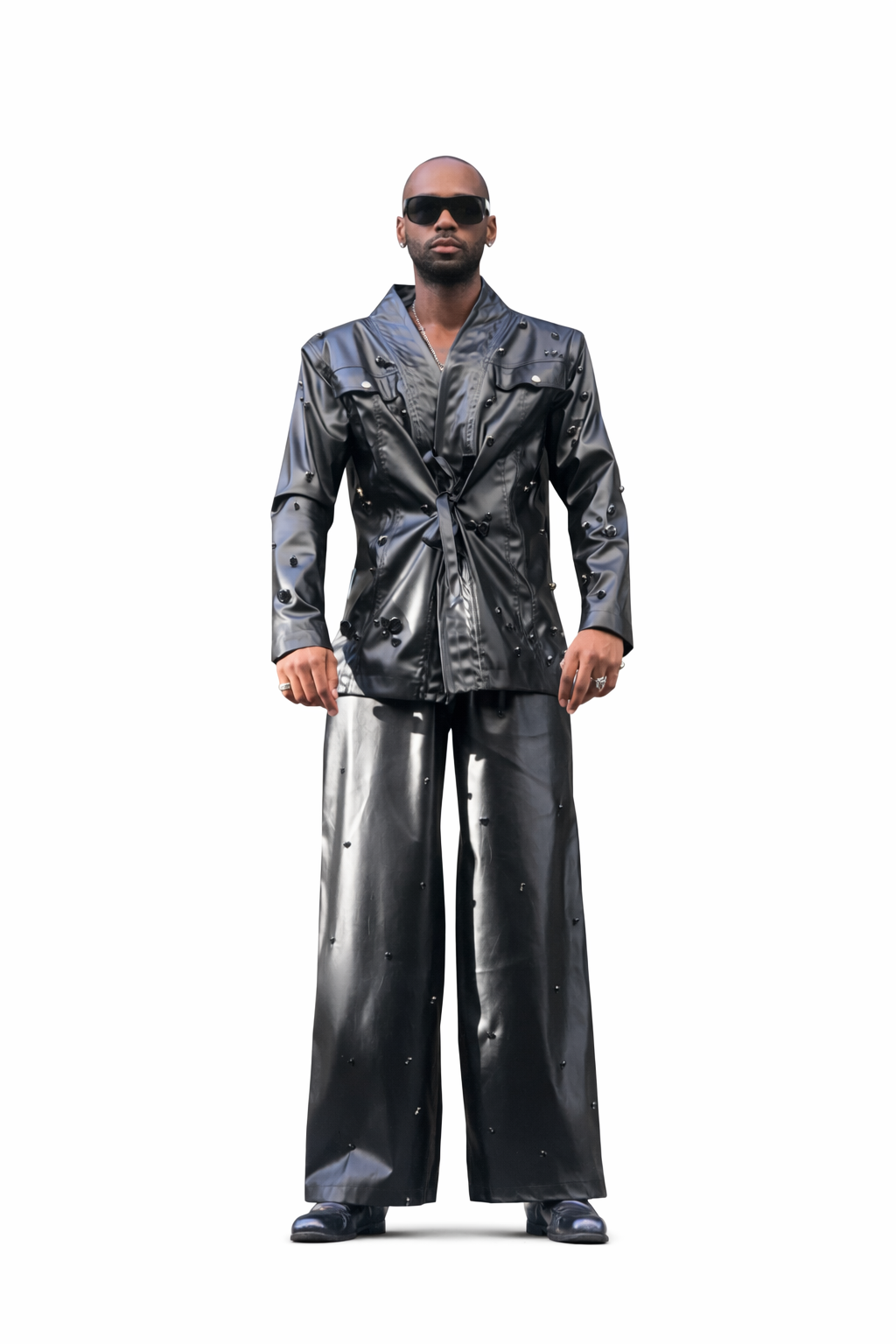 Designed with a relaxed, kimono-inspired silhouette, the piece features a wrap construction with a self-tie closure, allowing the garment to drape and shape the body with intention. Each embellishment is sewn by hand, creating subtle texture and depth while making every kimono uniquely its own.